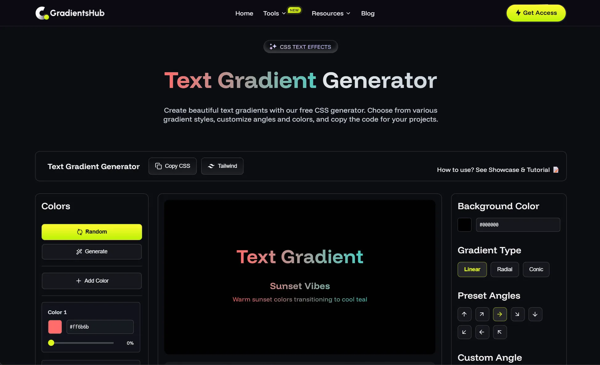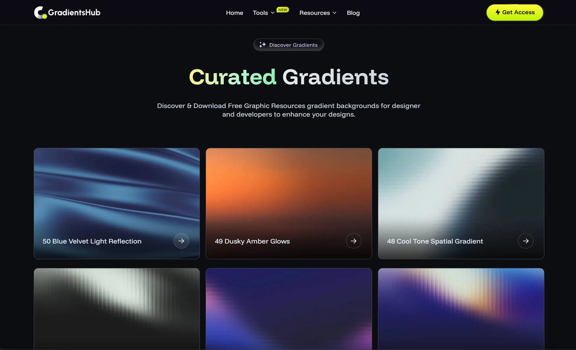 Gradientshub 是一个长期的项目,目前不定期更新。目标是打造一个围绕着渐变设计的一站工具站,目前内容包括原创渐变背景、AI 生成图片,以及文字渐变、背景渐变、梯度色卡等生成工具集合与教学内容,形成完整的渐变解决方案。希望这个网站能为设计师和开发者提供协助,解决渐变设计中可能会遇到的问题。